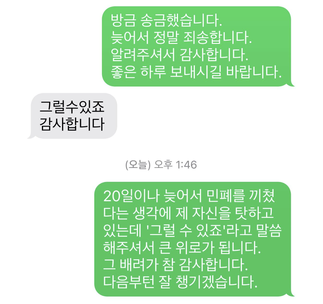 다시 ”그럴 수 있죠“라는 문자를 받았다.