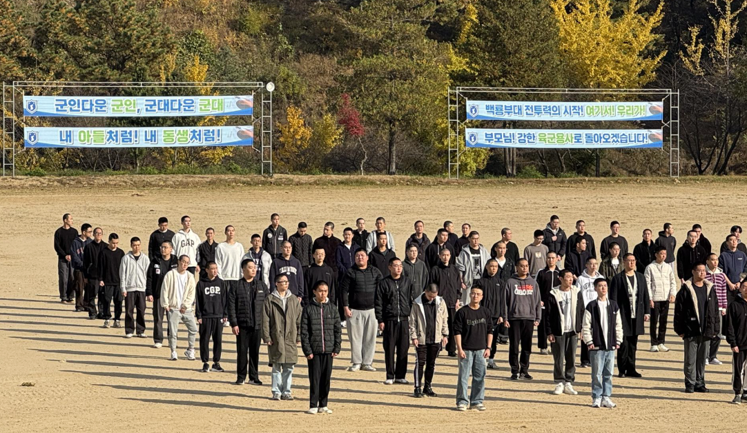 입소식은 35년전 입대한 내게는 거의 보이스카웃 캠핑장 입소 분위기였지만 부모님 없이 입소식에 선 청년에겐 두려움의 시작일 것이다.