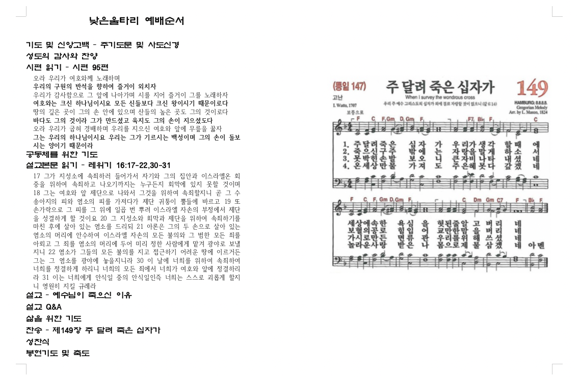 종려주일인 다음주에는 내리교회에서, 부활절인 그 다음주에는 광야교회에서 연합예배를 드리기로 했다.