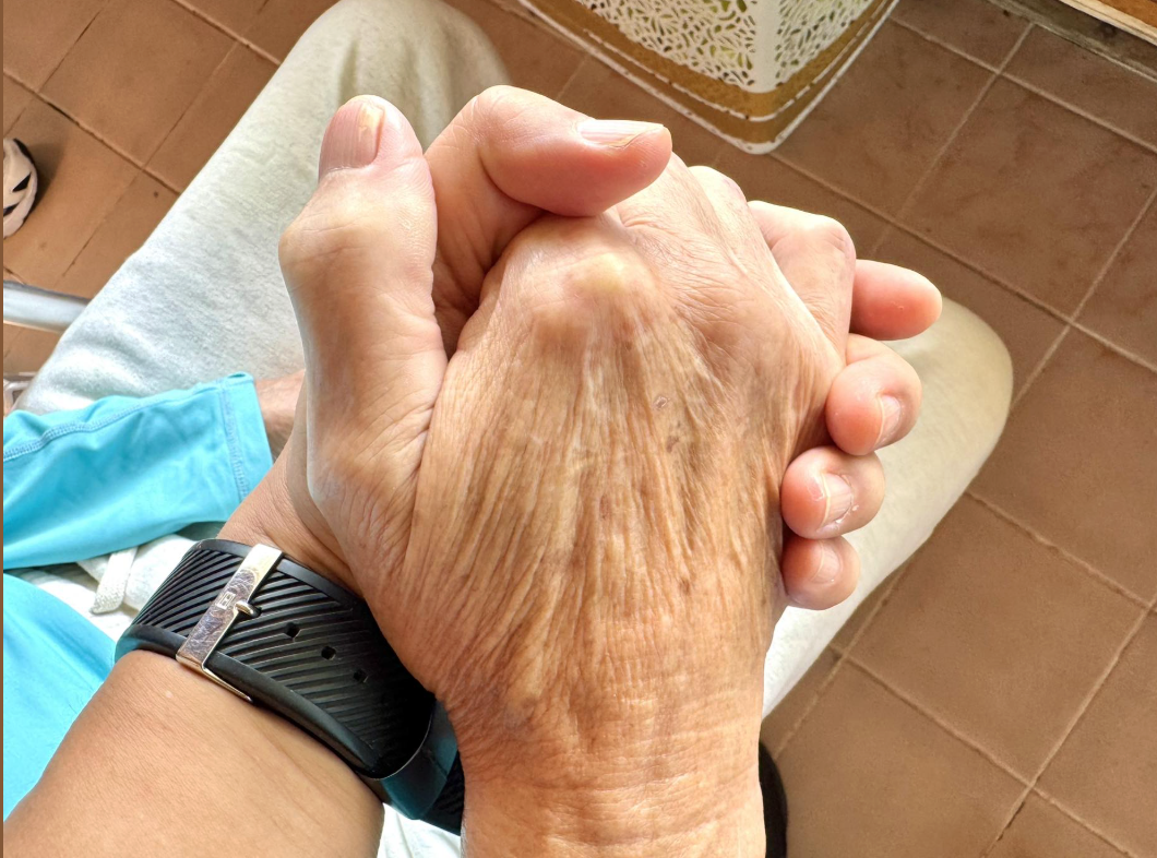 의자에 앉은 고문님 옆에 무릎을 꿇고 앉아 사진처럼 가까운 오른손을 잡았더니 고문님이 왼손으로 내 손을 감쌌다.